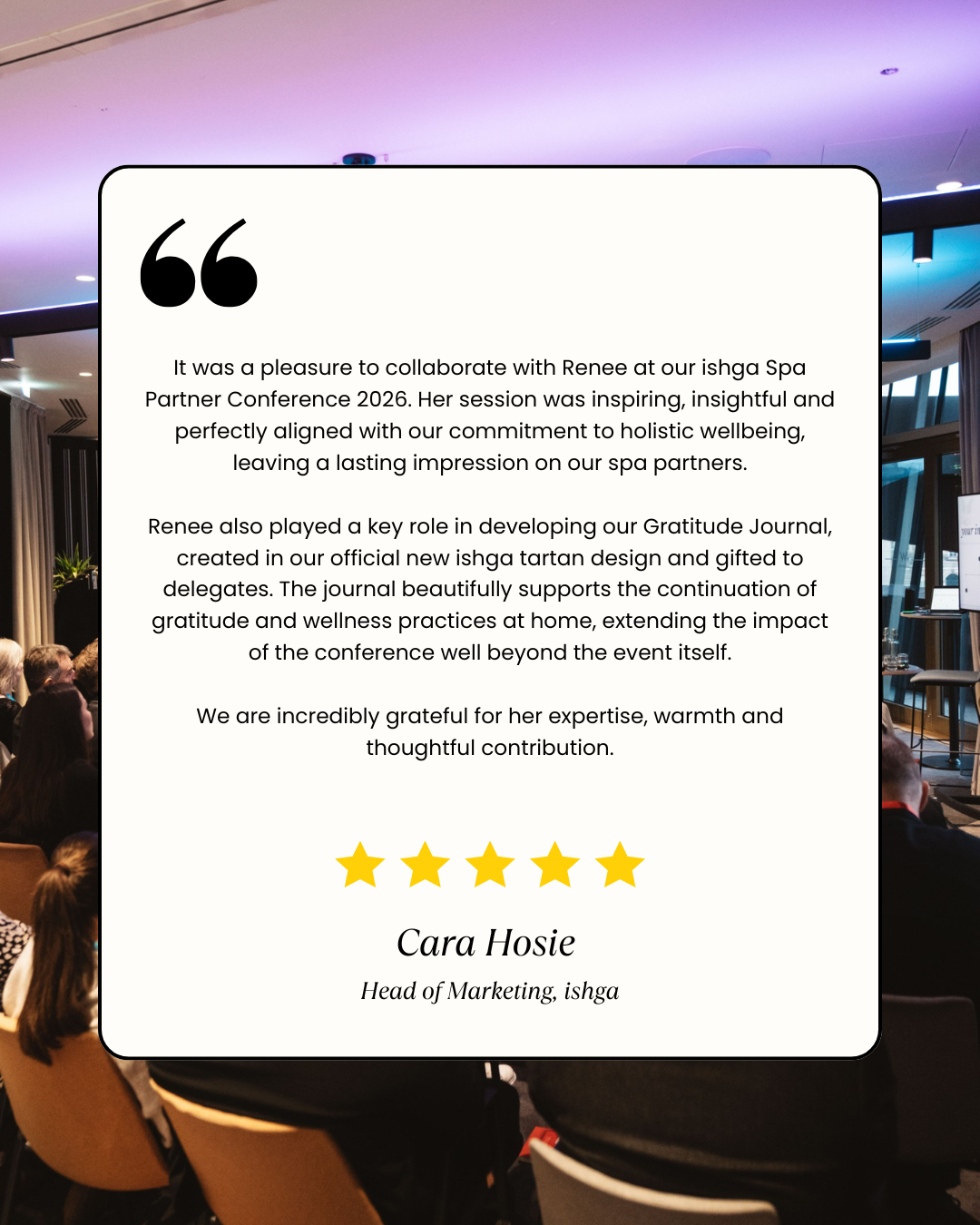 I also partner with select spas, health clubs and corporate organisations to deliver structured, in-person wellbeing initiatives designed to enhance member experience, retention and staff wellbeing.